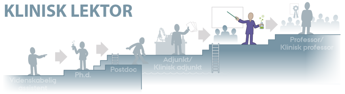 Som klinisk lektor er du ansat som speciallæge ved et hospital og har derudover en honorarlønnet videnskabelig ansættelse ved Institut for Klinisk Medicin (IKM). Som klinisk lektor kan du fungere som hovedvejleder for ph.d.-studerende.